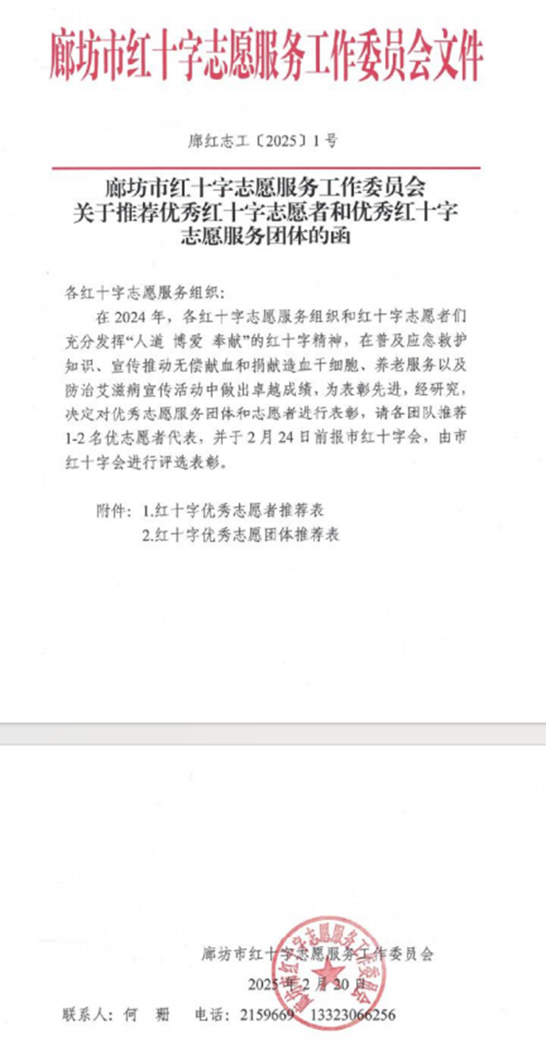 廊坊市红十字会志愿服务工作委员会发布文件