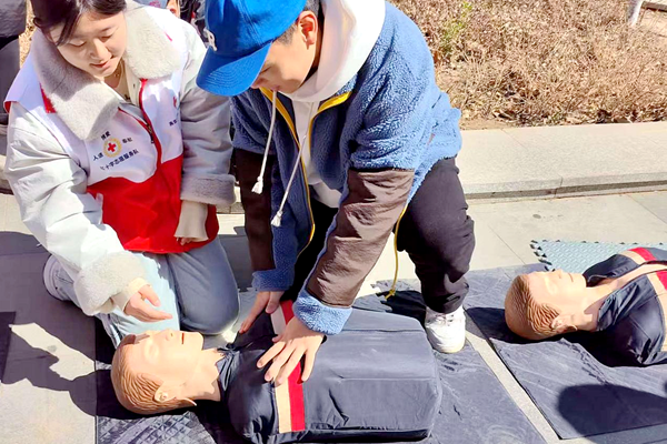 到达目的地后,志愿者们分工明确,积极为居民普及关键的健康知识与技能。在心肺复苏知识科普区,几位志愿者借助模拟道具,全神贯注地向围聚的居民们讲解心肺复苏的要点。他们一边以标准、流畅的动作进行演示,一边耐心且细致地讲解注意事项。在测血压的摊位前,志愿者们熟练地调整好血压测量仪,为居民进行测量,测量结束后,志愿者们还会结合居民的年龄认真向居民分析测量结果,给出合理的生活建议。