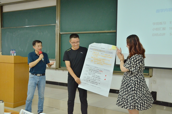 在特设活动环节,第三期教师们以小组为单位撰写教学设计方案,并进行成果展示。针对艺术传媒类课程和学生的特点,教师们积极地提问如何参照BOPPPS模型,找到属于艺术类学科的适用方法,设立准确可操作的教学目标,来鼓励学生进行创造。讲师对此提出了三点建议,一是在教学实践中深入分析学情;二是与学生多沟通,了解学生在学习中遇到的困难;三是以学生为主体。他希望教师们在今后的教学中,“让学生学得更有效,让自己教得更明确。”培训在通天塔游戏中结束。