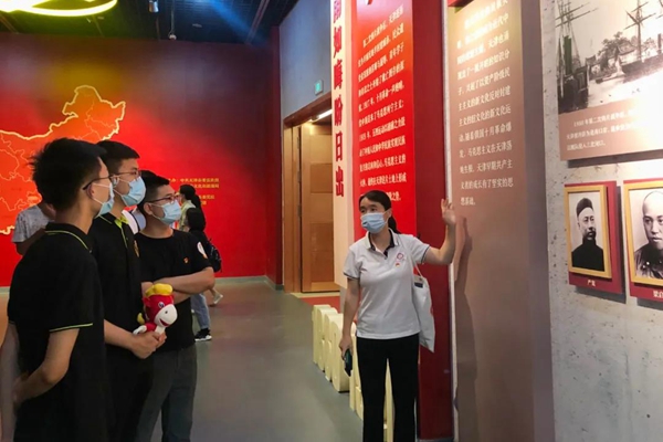 在“中华百年看天津”展厅中,实践队成员贺天尧为大家讲解了天津自旧石器时代末至清朝中后期上万年的历史进程,介绍了天津从“不毛之地”到运河城市的曲折过程。实践队成员李若昕认为这次参观是一次精神洗礼,自己对中国共产党的创建历程和中国近现代史有了更为直观和深刻的认识,同时也意识到自己身上所肩负的时代使命。