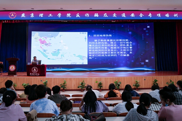 公安局刑警大队高文针对当前青年群体普遍社会经验少,自我防范意识薄弱的特点,结合校园电信诈骗实际情况,从五个方面向在场的师生详细介绍了电信诈骗的相关知识。高警官就近年来社会所发生的电信诈骗案件及当前网络诈骗的新形势、新手法,通过播放短视频的方式,生动形象地向现场师生揭露了电信诈骗的常用套路,以“不理睬、不轻信、不下载、不转账、不透露任何个人信息”五不原则警示师生要以“预防为主”做好自我防范。