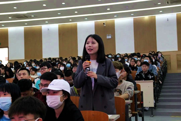 现场提问环节,郑教授与学生们热情互动,悉心解答新生提出的诸多问题。当学生问及如何合理规划大学四年时间时,郑教授给出建议,希望学生要身体练棒,适度参加社会活动,将大部分时间投入专业学习。