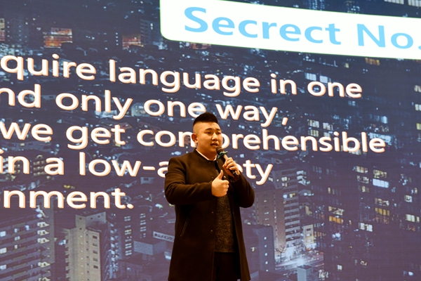 本次讲座对缺乏英语学习方法的学生进行了有效指导,避免学生因盲目学习而导致效率低下的问题。于老师分享了著名语言学家Krashen博士的二语习得建议,即“我们用同一种方式去习得一门语言,并且,有且只有一种方式,就是我们要在低焦虑的环境下,获得可理解的信息。”于老师建议学生要在享受中学习语言,“没有枯燥和习题,只有快乐和故事”,学习环境对于一名语言学习者而言至关重要。