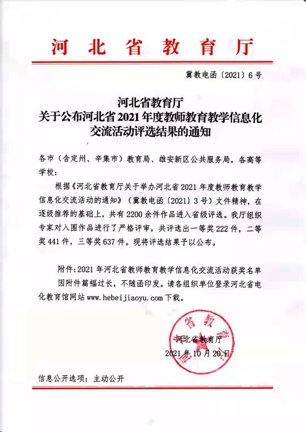 河北省2021年度教师教育教学信息化交流活动评选结果通知