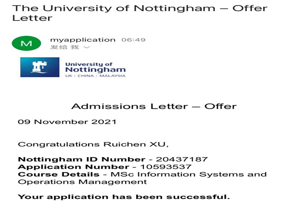 信息科学与技术学院自动化1804班的徐瑞辰先后获得诺丁汉大学、莫纳什大学和萨塞克斯大学的offer。