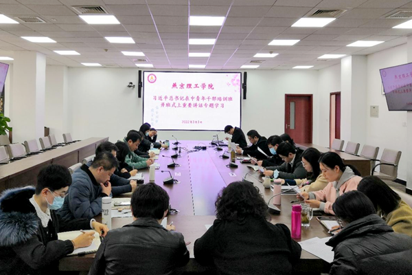 习近平总书记于3月1日在2022年春季学期中央党校(国家行政学院)中青年干部培训班开班式上发表的重要讲话,在燕理广大教职员工尤其中青年干部中引发热烈反响。大家表示,要认真学习领会习近平总书记重要讲话精神,牢记初心使命,实干笃定前行,在大有可为的新时代拼搏奋斗,创造出无愧于党和人民的新业绩。