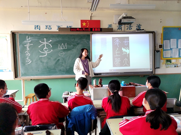 李姝含教学生书法课