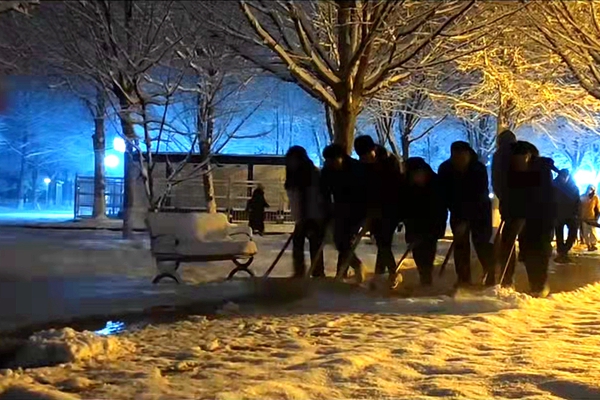 3月18日,一场大雪如约而至,银装素裹的初春美景为封闭管理中的师生带来许多欢乐,但也为全员核酸检测带来了一些小麻烦。18日晚,学校体育学院20余名教职工自发组织成立疫情防控紧急服务小分队,开展积雪清理工作。凛冽的寒风,丝毫没有挡住每一位教师们扫雪的热情,大家挥舞着铁锹和扫帚,将核酸检测点出入口前清理出一条宽阔的道路,保障师生能够顺利前往体育馆内进行检测,保障了核酸检测顺利进行。