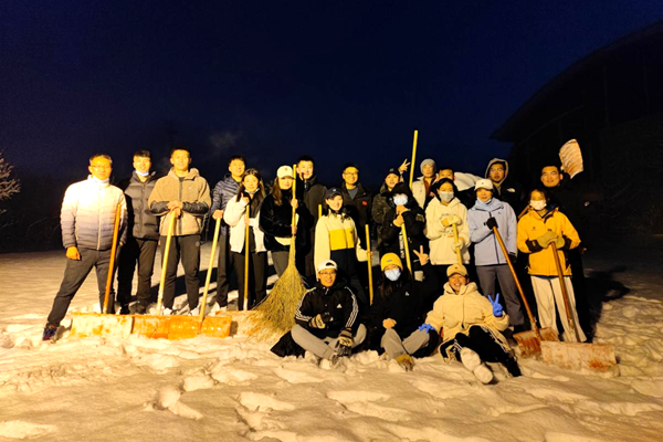 体育学院教师组成疫情防控紧急服务小分队清理积雪
