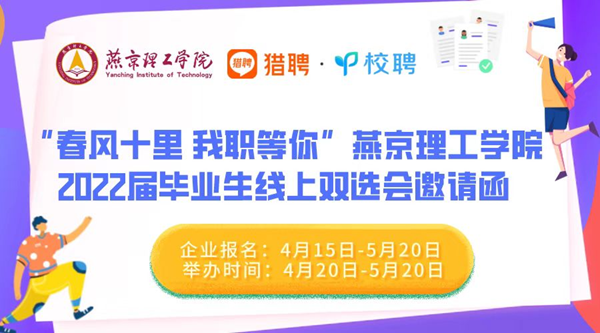 本网讯(就业指导与校企合作中心 李艳杰)为贯彻落实党中央、国务院“稳就业”“保就业”决策部署,按照2022年《政府工作报告》落实落细稳就业举措部署要求,克服新冠疫情带来的消极影响,抢抓毕业生离校前求职关键期,全力促进高校毕业生尽早就业、顺利毕业。根据教育部相关安排,燕京理工学院于5月9日到5月15日期间,举办“就业促进周”活动,同时为2022届毕业生发出线上双选会邀请函,全力促进我校2022届毕业生顺利就业。