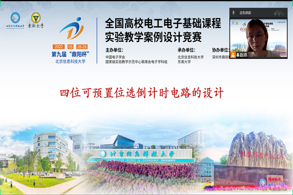 本网讯(信息科学与技术学院 赵燕 薛乐研)第九届全国高校电工电子基础课程实验教学案例设计竞赛(鼎阳杯)全国总决赛于5月28日-29日在线上举行,燕京理工学院信息科学与技术学院赵燕(负责人)、李丽芬、张伟娟团队荣获全国一等奖,参赛作品为“四位可预置位选倒计时电路的设计”。这是信息科学与技术学院首次选派教师参加全国高校电工电子基础课程实验教学案例设计竞赛(鼎阳杯),便取得了骄人成绩,刷新了我院教师参加省级以上教学竞赛的最好成绩,展现了燕京理工学院的教职工们在实践教学中的扎实功底。