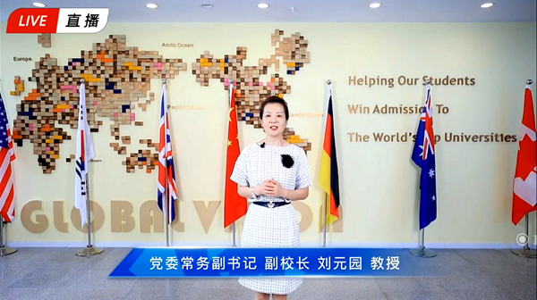 党委常务副书记、副校长刘元园在致辞中对往届校园大使在国际舞台上的出色表现给予充分肯定,并对决赛入围选手表示祝贺,希望本届校园大使继续发挥当代大学生力量,用心感悟中国精神,讲好中国故事,在国际舞台传播中国声音,成为为祖国繁荣和民族复兴贡献智慧与力量的优秀燕理人。