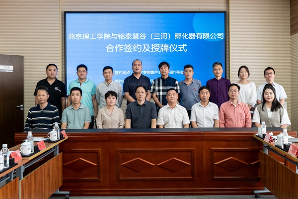 校企双方就建立合作关系达成一致意见,学校为铭泰慧谷(三河)孵化器有限公司授予“大学生实习与就业基地”牌匾,双方签订校企合作协议。