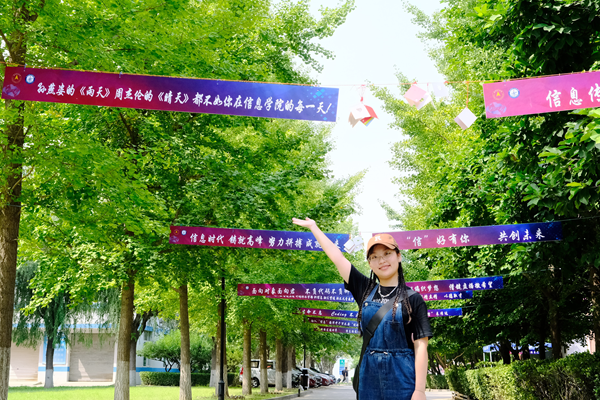 在通往信息科学与技术学院报到点的必经途中,写满欢迎和寄语的条幅让这条银杏路变成了“迎新祝福大道”。“孙燕姿的《雨天》周杰伦的《晴天》都不如你在信息学院的每一天!”“‘信’好有你 共创未来”等等,这些在迎新道路上布置的横幅,悬挂的写着美好祝愿的便签,都是用心迎接着新同学们在美好的信息学院,努力奋进,成就未来。