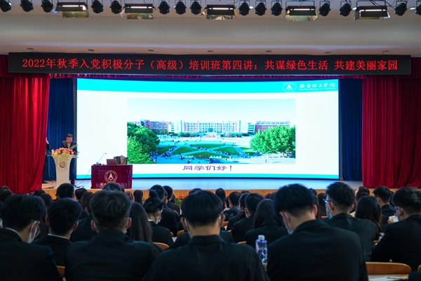 本网讯(党委办公室 张雨 金志成)2022年11月2日,燕京理工学院2022年秋季入党积极分子(高级)培训班第四讲在学校报告厅举行,此次培训的主题为:《共谋绿色生活,共建美丽家园》,由燕京理工学院校长杨庚宇主讲。