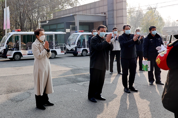 本网讯(后勤资产处 李楠)11月17日,校领导杨庚宇、刘元园、宋伟、赵鹏一行代表学校看望慰问坚守在校园一线的保安员、保洁员、食堂工作人员和校医务室人员等服务保障人员。