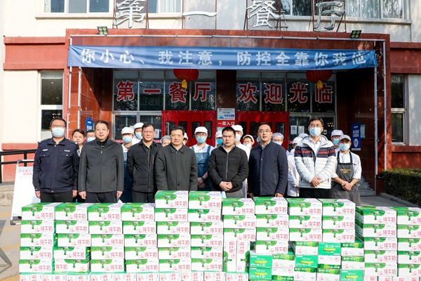 校领导一行先后来到正南门、餐厅、健康驿站、医务室等地,了解工作生活情况,为大家送上慰问品。杨校长代表学校对他们克服困难,坚守服务一线,舍小家为大家的无私奉献表示感谢,同时叮嘱大家增强安全意识和自我防护意识,从严从实落实各项防控举措。他鼓励大家,要坚定信心、众志成城,坚决打赢疫情防控阻击战,希望大家再接再厉把各项工作做好,全力以赴为师生提供更优质的后勤服务保障。大家纷纷表示一定不会辜负学校嘱咐与期望,尽职尽责,扎实做好学校后勤服务和安全保卫工作。