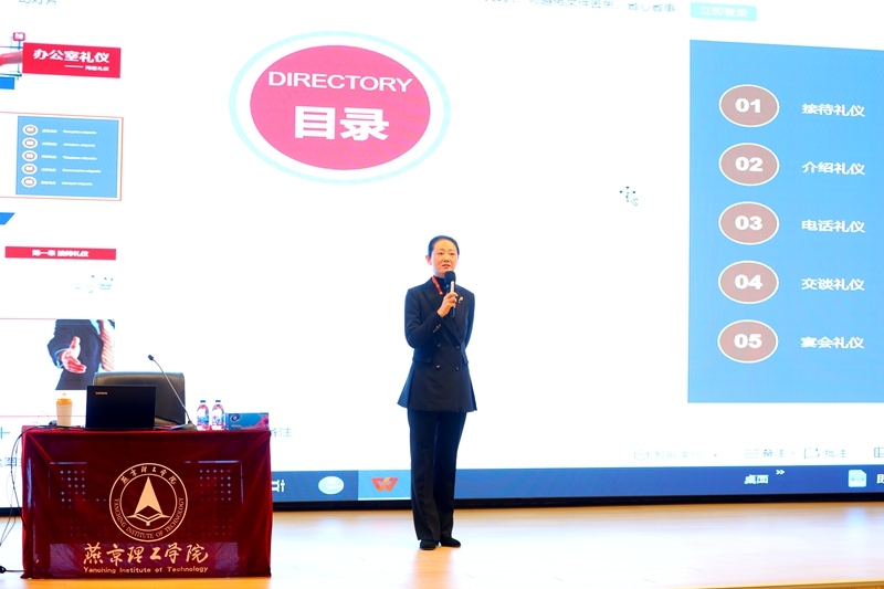 校长助理赵鹏在主持中说,作为高校教师,个人形象和行为举止要符合教育工作者的身份,希望参会教师能将所学礼仪知识转化为个人内涵素养,规范自我言行,树立良好形象,用自身的言传身教影响学生,为学校的教育教学工作锦上添花。