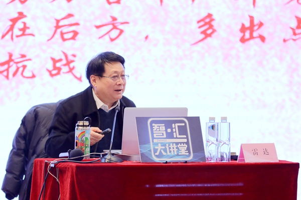 雷达教授在《我和我的祖国》歌声中拉开“歌声中的党史”讲座的序幕,师生手持五星红旗翩翩挥动,《南泥湾》《唱支山歌给党听》等经典歌曲引发师生合唱。雷达教授在讲座中选取多首中国共产党成立以来各个历史时期最具代表性的经典歌曲,在不同曲风的经典歌声中展现党的“新生期”“奋斗期”“徘徊期”“成熟期”,展现先辈先烈的英勇奋斗、顽强拼搏精神。雷达教授告诫同学们要不忘初心,党的奋斗征程始终鼓舞着我们前行,广大青年要不懈奋斗、勇于作为。他将时代发展与音乐美育结合起来,通过艺术美育的方式学习党史,用歌声展示百年党史筚路蓝缕的艰辛历程。