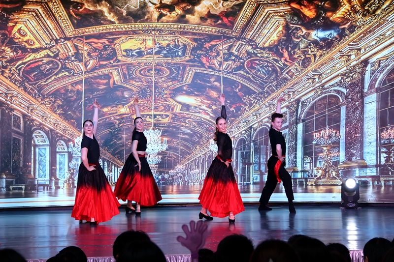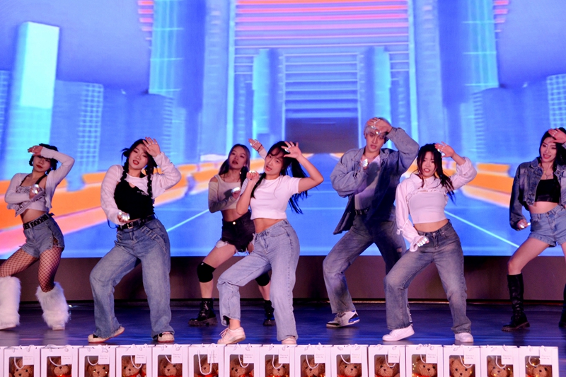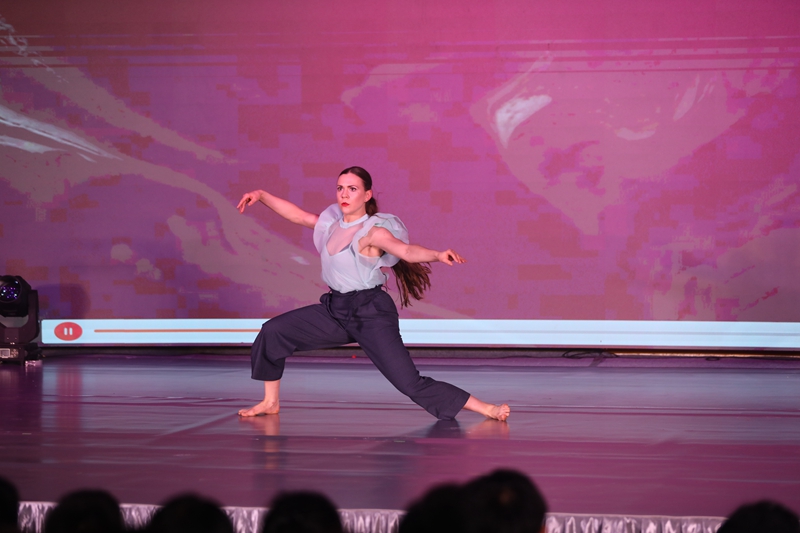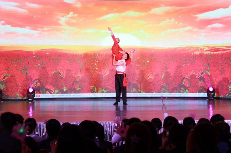 初次见面,以舞会友。两位艺术家边教边练,将芭蕾舞和现代舞融合,与同学们共同编排打造了一组舞蹈作品。青年如初生的朝阳,热烈而充满朝气。同学们也纷纷展示自己拿手的舞蹈作品。王子涵同学在爵士舞《hype boy》中舒展青年的朝气,学校体育舞蹈队在《歌舞青春》中展现热情四射的青春活力,林晓文同学在《典狱司》中展现古典舞的轻柔曼妙和娇美动人,常泓瑞同学和郭晓月同学的爵士舞《fever》《nice body》尽显意气风发的少年气息,孙丽媛同学在袅袅浪漫的舞姿和声声动心弦的音乐中表演傣族舞《彩云之南》,校艺术团舞蹈部江婷婷、徐维鸿等同学们带来的舞蹈《万疆》展示了热烈的家国情怀。