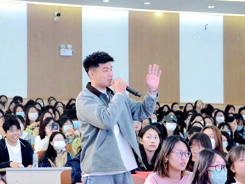 围绕“我喜欢的一首英文歌”这一主题,英语专业白蕊、法学专业张子藤、商务英语专业史泽浩分别分享他们喜爱的《love story》《let it go》《Something just like this》三首歌曲,并讲述了自己的音乐故事。张子藤分享,是《let it go》这首歌中的勇敢与突破精神鼓舞着自己勇敢前行,无惧风雨。