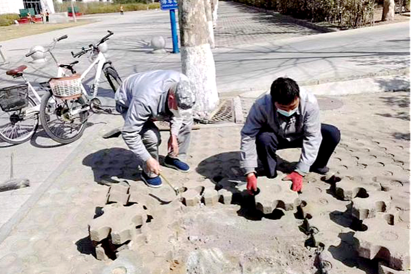供暖结束后,运维团队及时对供暖设施设备进行维护保养,更换存在问题的供暖阀门,保障供暖设施正常使用。一砖一瓦皆为景,运维团队对校园内破损老旧的地面砖、井盖、木花箱和墙面等进行了全面的维修和粉刷,使校内设施设施焕然一新。