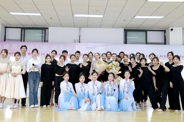 同学们也为艺术家们展示了自己准备的舞蹈作品。王子涵同学带来爵士舞《hype boy》,并邀请两位老师一起表演;校舞蹈队带来表演《歌舞青春》;林晓文同学带来古典舞《典狱司》;常泓瑞和郭晓月同学带来爵士舞《fever》《nice body》;孙丽媛同学带来傣族舞《彩云之南》;校艺术团舞蹈部带来舞蹈《万疆》。同学们动感的舞姿展示着青春的朝气和气势磅礴的家国情怀,两位老师也深受感染。