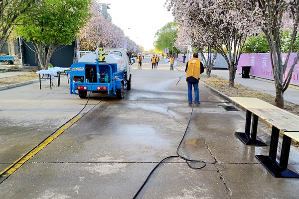 在海棠文化节来临之际,后勤保障组打好提前量,统筹规划,提前做好各项保障工作。保洁团队提前安排,加大清扫保洁力度,提前做好道路清洗工作,强化“人机结合”作业模式,使用清扫车、高压冲洗车,进行逐路段精细化清扫、冲洗,靓化校园道路环境。同时,也加强巡查力度,做到第一时间发现问题、第一时间处理问题,确保各项工作做细、做实、做到位。合理安排作业车辆、人员,增加清运车辆和清运频次,科学安排垃圾清运时间和次数,提高清运效率,确保垃圾清运及时。
