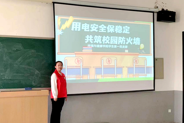 环境与健康学院于2023年4月12日开展“用电安全保稳定,共筑校园防火墙”主题活动。学生党员代表介绍不合理用电的几项行为,例如:在宿舍生活时,违规使用大功率电器,使用“三无”产品等现象。并向大家普及火灾逃生知识,讲述用电安全的重要性。