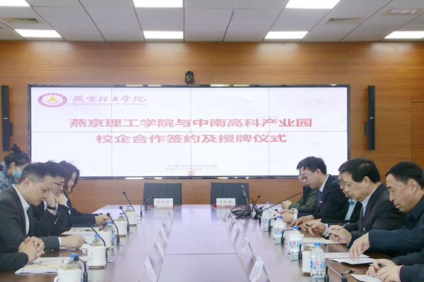 本网讯(就业指导与校企合作中心 李艳杰)4月18日,我校在综合楼428举行中南高科产业园校企合作签约与授牌仪式。中南高科产业园燕平项目总经理李沐,产业服务总经理霍海涛,燕京理工学院校长杨庚宇,智能工程学院与就业指导与校企合作中心负责人等参加此次会议。