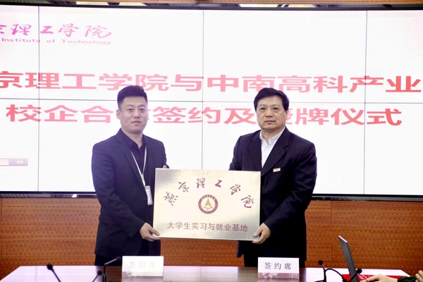 智能工程学院院长李秋生和中南高科产业园项目经理刘稳静代表校企双方签订校企合作协议,杨庚宇校长为中南高科产业园授予燕京理工学院大学生实习就业基地牌匾。