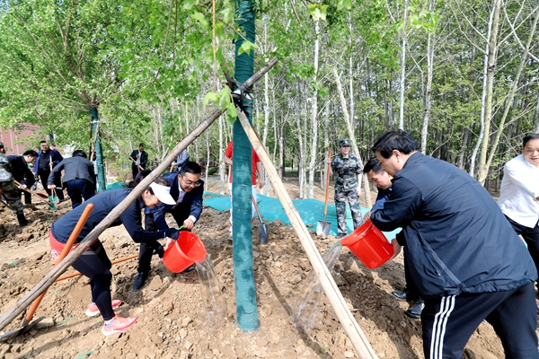 本网讯(党委办公室 郭雯 宣传部 付盛通)芳菲四月,生机盎然。为进一步提高全校的绿化意识和文明素质,打造绿色学习生活环境,创建美好生活社区。4月19日,燕京理工学院理事长李宝山,校长杨庚宇,党委常务副书记、副校长刘元园,党委副书记、副校长王传超,副校长宋伟,校长助理赵鹏,部分中层干部和学生代表一起为美丽的校园增添新绿。