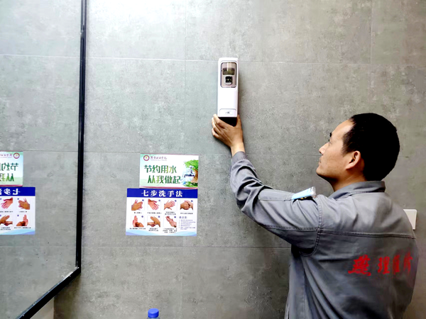 维修师傅更换卫生间喷香罐