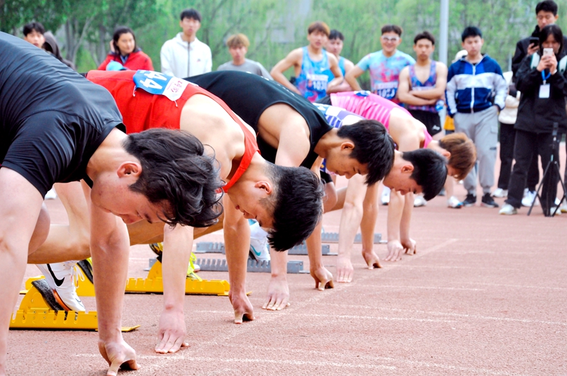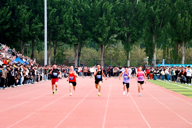 迎春风之时,绽放青春之彩。赛场上,横看四周,裁判们指表计时,丈尺量寸,恪守“准确、公平、公正”执法原则。志愿者们身着红马甲坚守岗位,热情帮助每一位师生。运动员们竭尽全力,或一骑绝尘,或全力以赴,用青春挥酒着汗水。塑胶跑道上,选手们威猛如虎、矫捷如燕。骄阳正好,风过林梢,在加油与呼喊声中,赛场上尽展意气风发的青春笑脸。