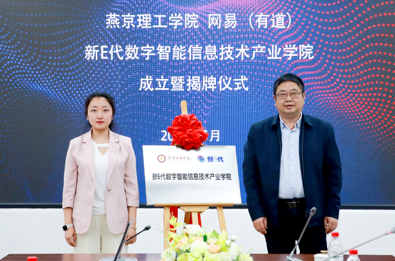 本网讯(信息科学与技术学院 宋美娇 孔新月)5月6日,燕京理工学院联合网易有道、烺际科技有限公司共建的网易(有道)数字教学实训基地和新E代数字智能信息技术产业学院成立揭牌仪式在综合办公楼328会议室举办。