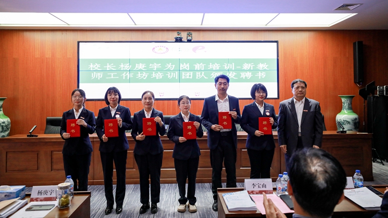 校长杨庚宇为入选岗前培训-新教师工作坊培训团队的老师颁发聘书