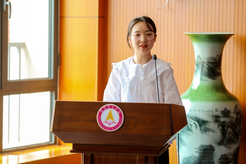 新教职工代表王雨婷做了发言。她分享了入职以来对学校的认识与感悟,代表在座新教职工就学校搭建的学习、成长的平台表达了感谢,并表示要热爱教师职业、严格要求自己,学习理论知识、夯实专业素养,完善自我、加快成长,为学校的教育教学工作做出积极贡献。