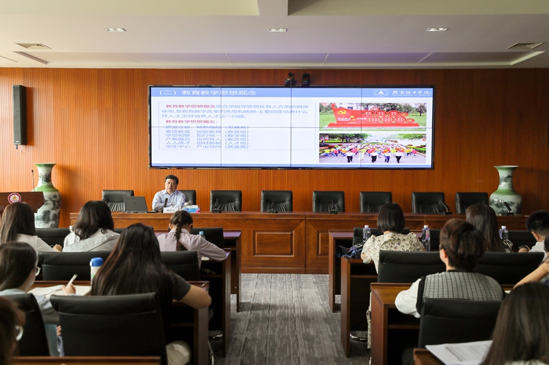 他通过办学指导思想、教育教学思想观念、办学定位、人才培养模式、校园文化与大学精神等方面的阐述,让新教职工全面了解我校的教育理念;通过介绍师资队伍建设的意义、规划、要求措施和科研团队、优秀教学团队、教学奖励和科研教研项目,使新教职工系统了解学校的师资建设情况;通过优化专业结构、加强课程和教材建设、加强实践教学、深化教学改革、创新创业教育五个方面的教育教学改革思路阐述,介绍了学校在教育教学方面取得的成绩。