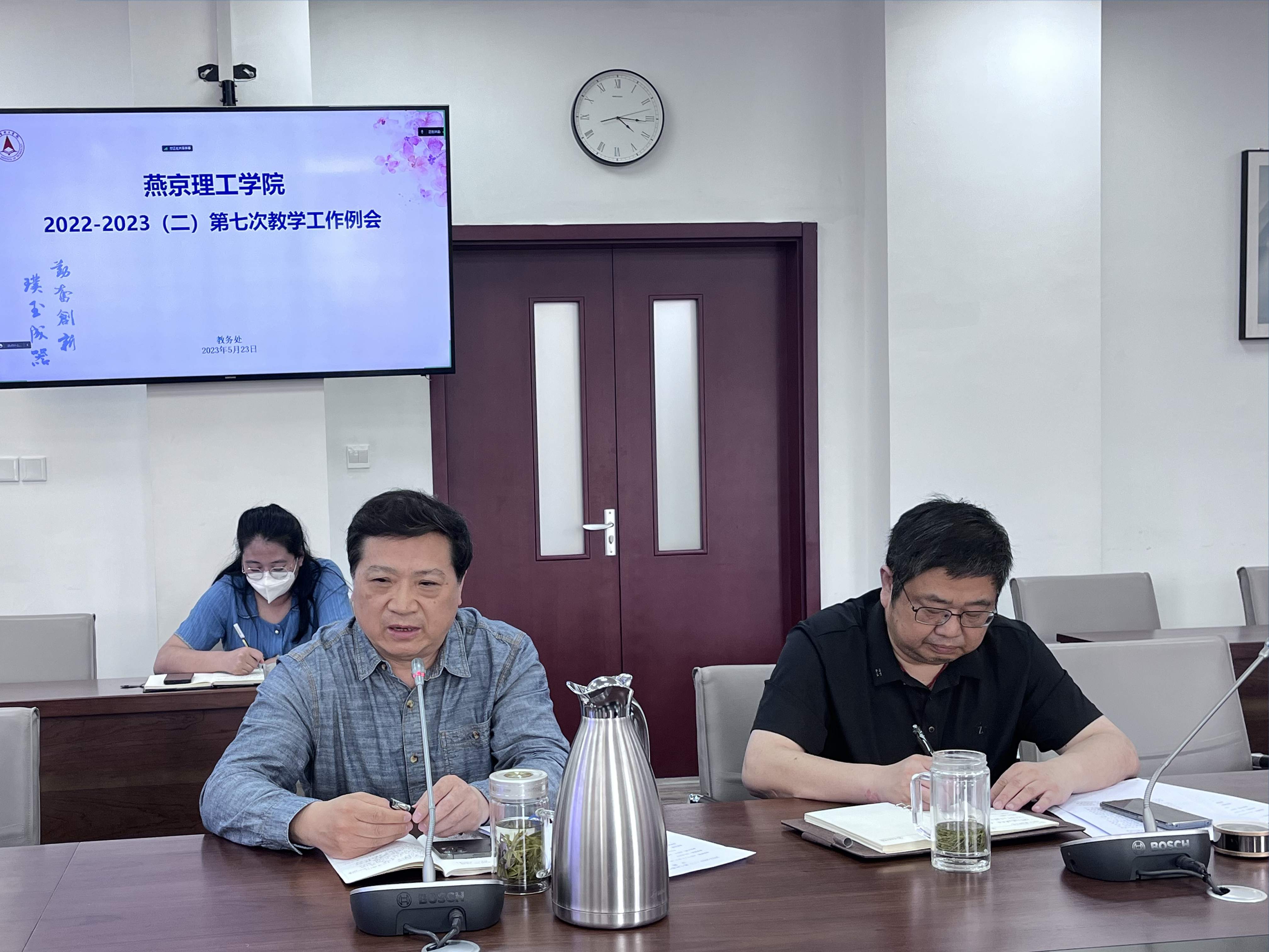 本网讯(教务处 李丽荣)5月23日,我校第七次教学工作例会在综合办公楼328会议室召开。校长杨庚宇、副校长吴敏,各二级学院院长、教学副院长、督导办、国际教育学院、学生处、教务处相关人员参加了会议。会议由副校长吴敏主持。