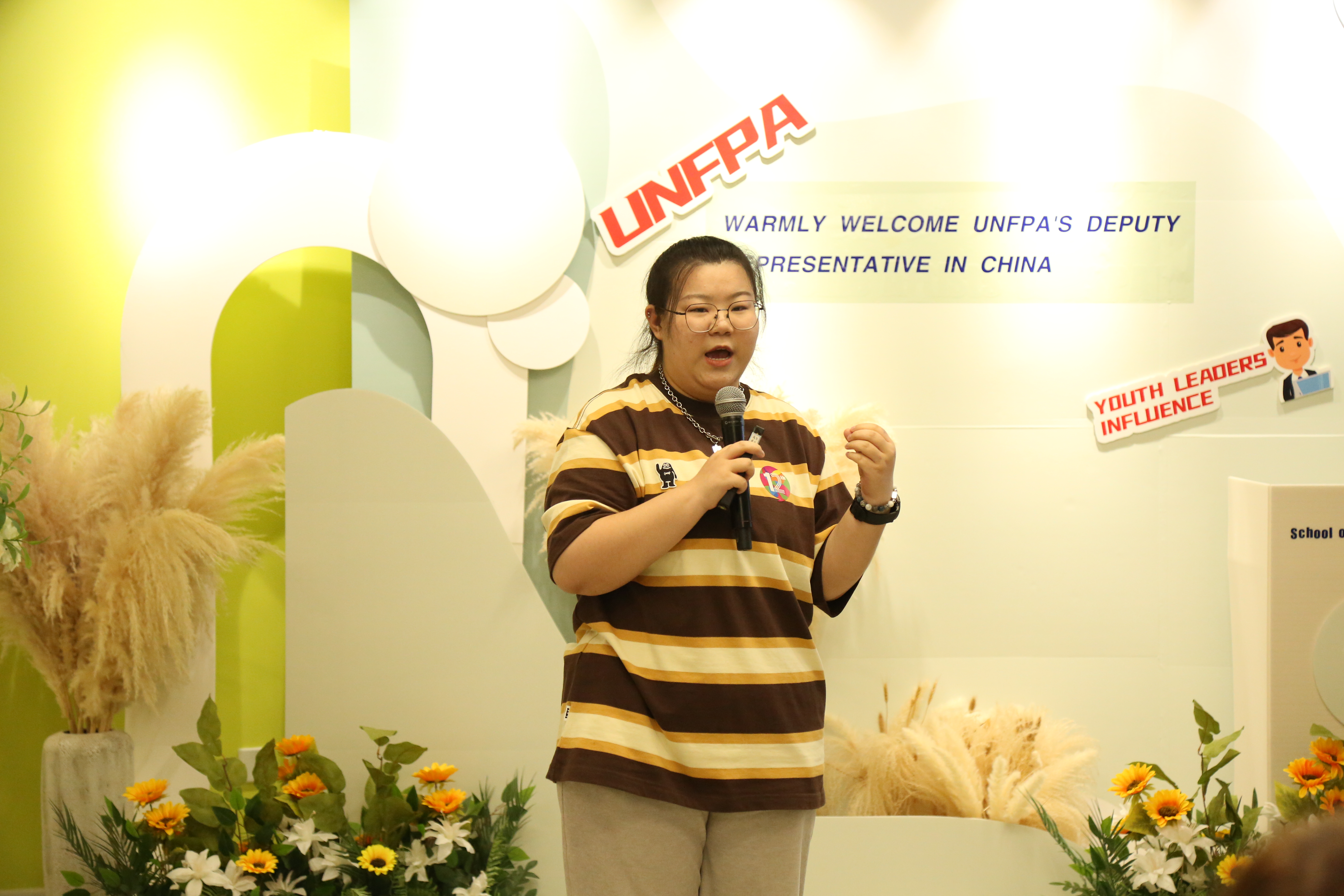 在国际学苑一层大厅,欧雯珊女士与学生代表共同参与“时代青年 共话未来”主题活动,畅谈青年领导力与社会责任。“联合国人口基金UPower计划:青年榜样影响力培训”校园大使代表任泓铮、尚明硕、吴晓闪、杨思佳、王天祎等同学与欧雯珊女士就参加校园大使培训期间的课题进行了汇报。