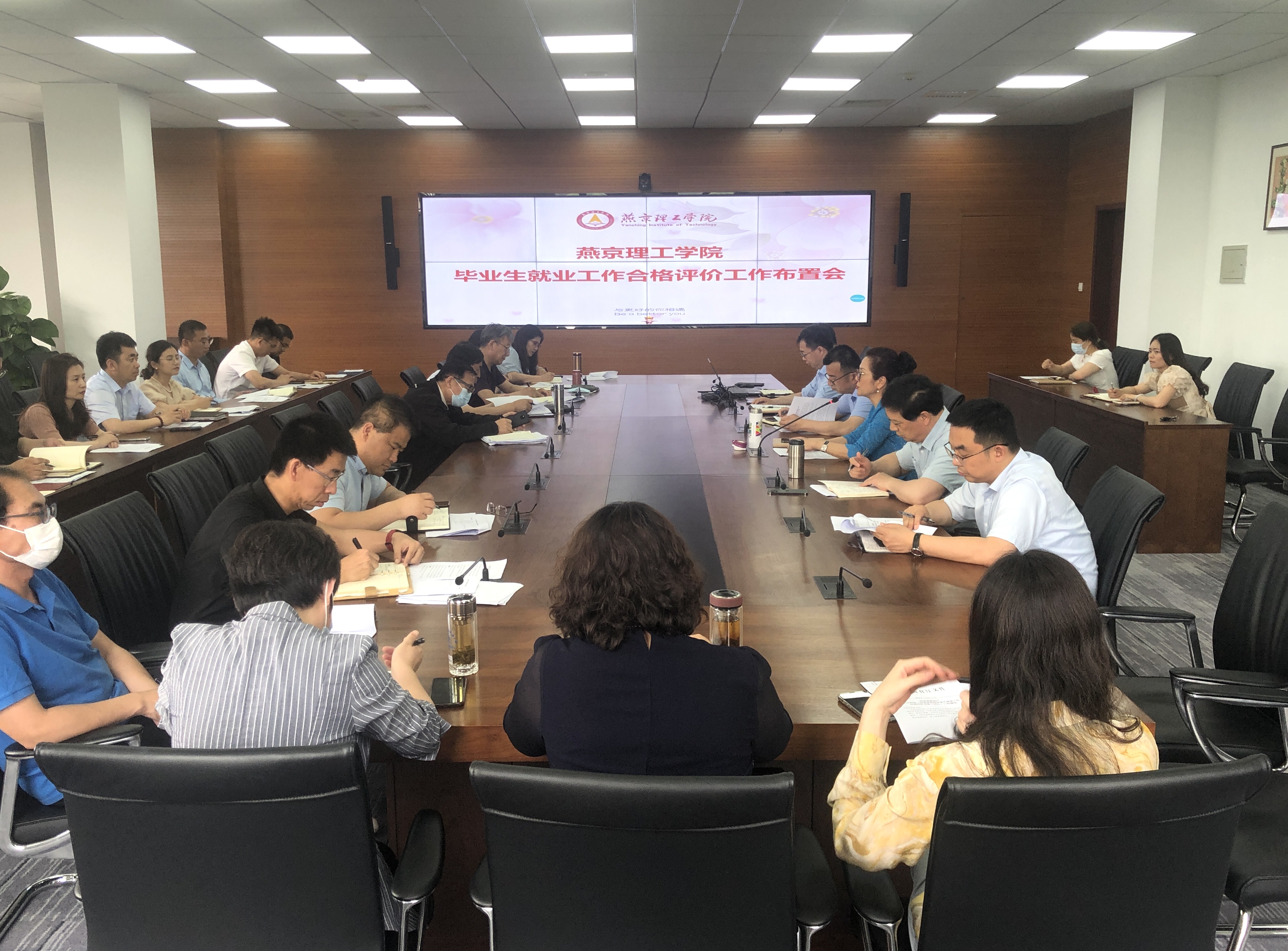 5月29日,燕京理工学院召开毕业生就业工作合格评价工作布置会。校长杨庚宇,党委常务副书记、副校长刘元园,党委副书记、副校长王传超,校长助理赵鹏,各二级学院院长、书记,各相关职能处室负责人,就业指导与校企合作中心全体人员参加此次会议。