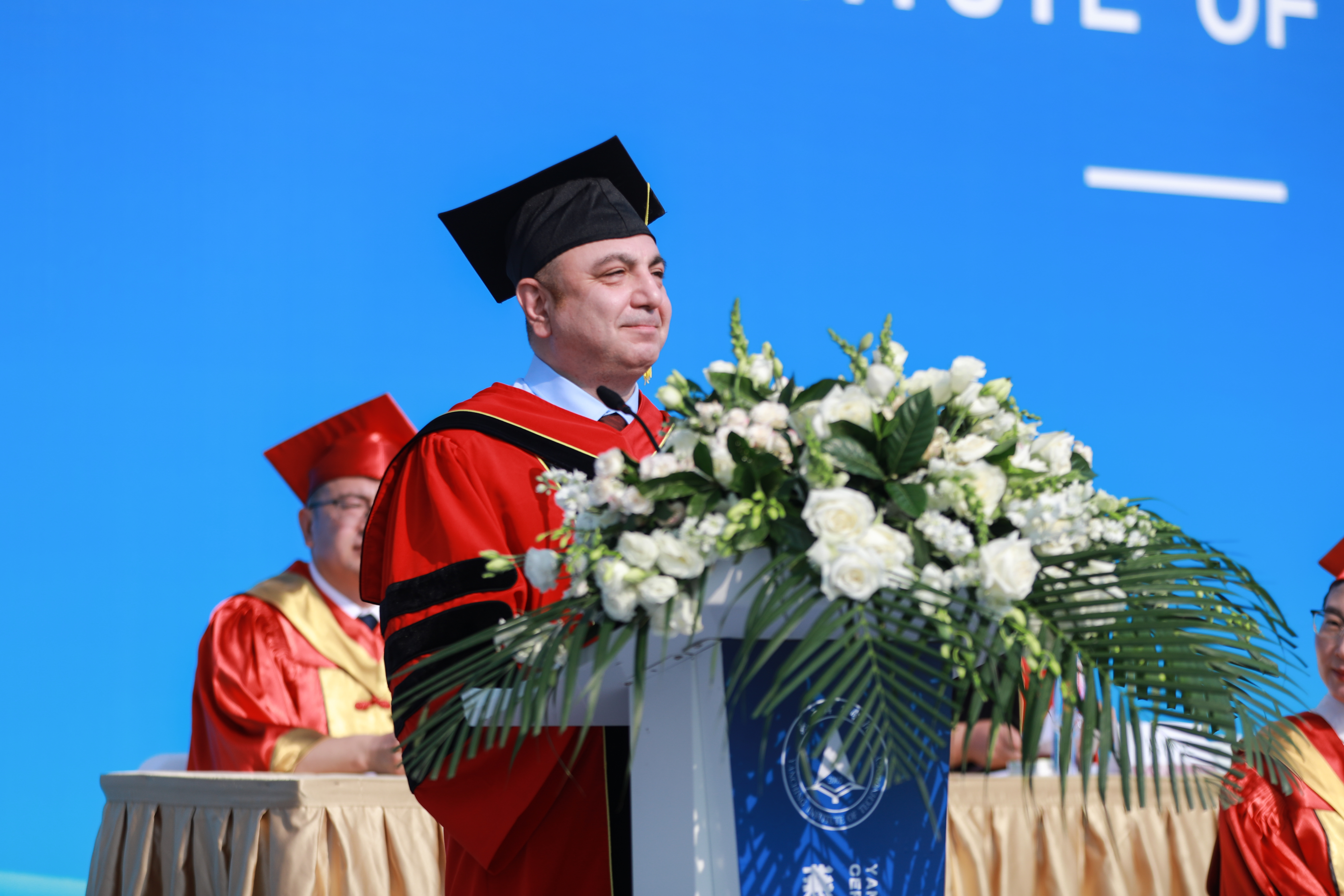 本网讯(宣传部 李家曾 刘婷婷 付盛通 谷是瑾等)首夏犹清和,芳草亦未歇。6月16日,燕京理工学院“青春奋进正当时,不负韶华勇担当”2023年毕业典礼在体育场举行。校长杨庚宇,党委书记朱代春,党委常务副书记、副校长刘元园,党委副书记、副校长王传超,副校长吴汶燕、宋伟,校长助理赵鹏,校长办公会成员李巧云、沈宏、张炜,学校国际导师弗兰克,全体中层干部,毕业生家长代表、教师代表、校友代表、2023届毕业班辅导员老师和毕业生,以及2020、2022届毕业生代表参加了活动。典礼由党委副书记、副校长王传超主持。