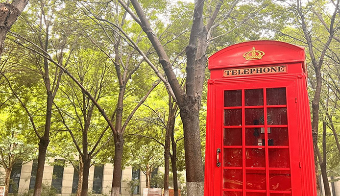 学校对综合办公楼、公寓楼、实训楼周边绿地景观进行了改造,通过将人工湖、景观树、草花的高低组合,使得校园景观错落有致。拉膜景观和颇有时代感的电话亭分别亮相璞玉园和报告厅南广场,医务室南侧青春乐章小花园正在落成,校园又添新的网红打卡地。