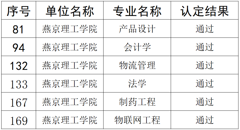 省级一流本科专业验收认定结果