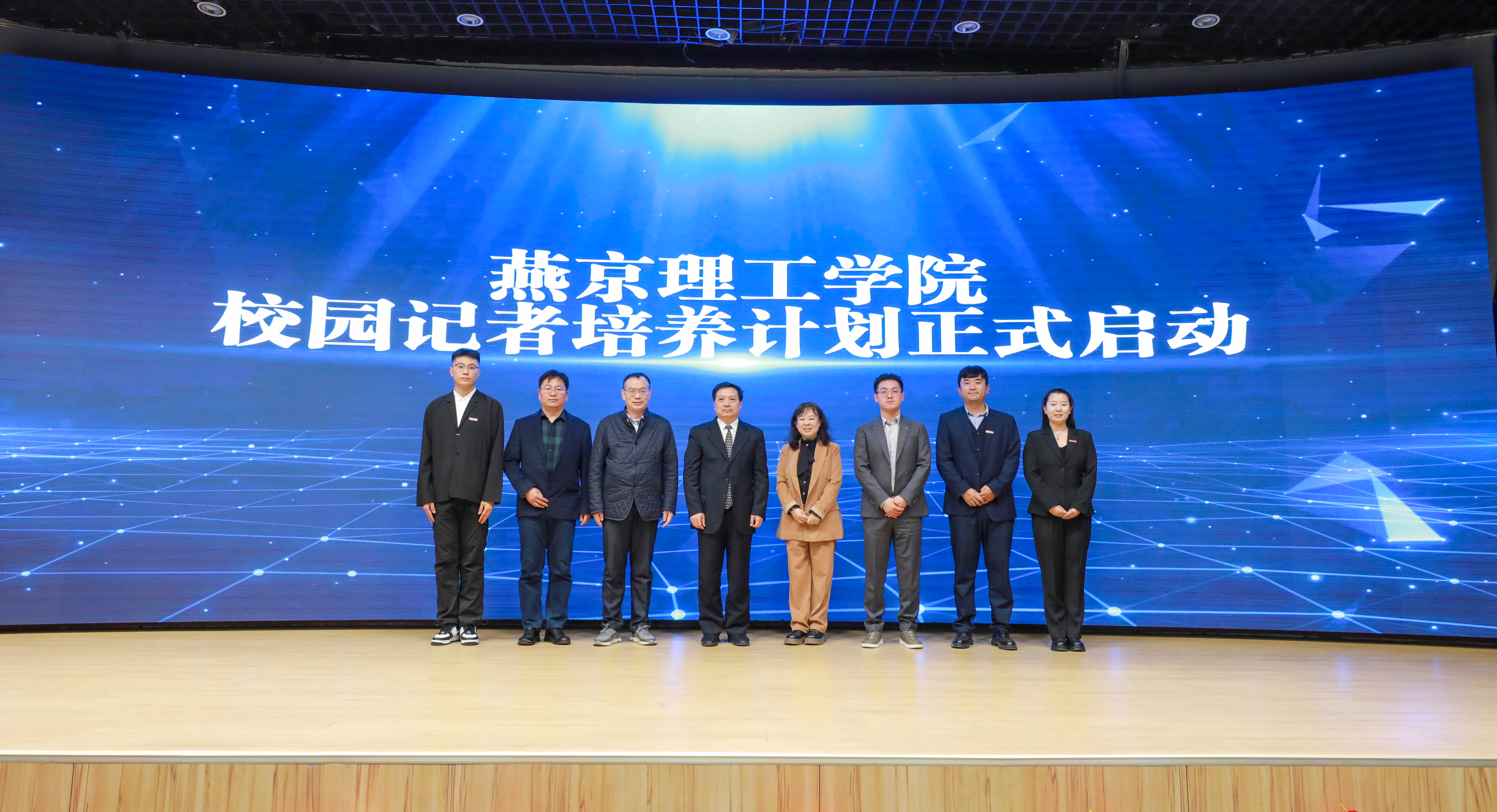 现场,校园记者培养计划正式启动,联动媒体共同培养校园融媒人才。校长杨庚宇,团中央未来网万兴亚总裁,北京少年报常红主编,微博年轻用户发展部张寓宸总监,凤凰教育孙金勇总监,学校全媒体中心指导老师付盛通,人文教育学院新闻中心指导老师王妍,校媒学生记者代表石芮源共同启动校园记者培养计划。