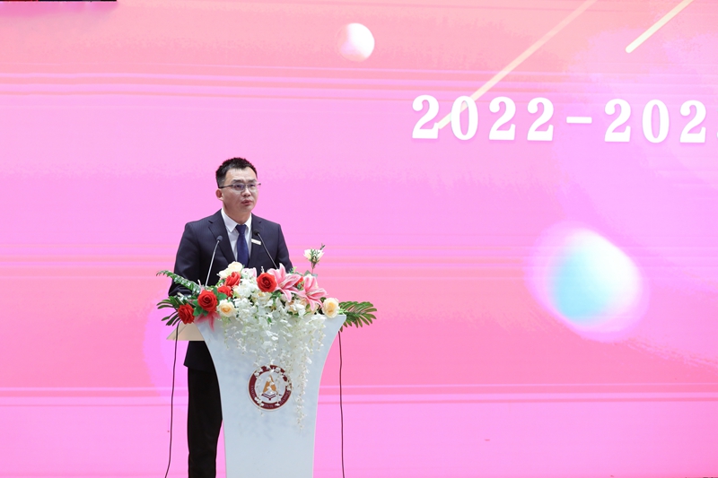 校党委委员、校长助理赵鹏作学年度宣传工作报告。他总结,在过去的一学年,学校的宣传工作始终以习近平新时代中国特色社会主义思想为指引,紧紧围绕学校发展大局和中心工作,坚持实施“高端化 全球化 个性化”发展战略,落实“科技 品质 成果”年度主题任务,认真学习宣传贯彻党的二十大精神,落实立德树人根本任务,构筑融媒矩阵做好新闻宣传,建设全媒体传播体系,持续繁荣校园文化,打造燕理品牌,聚力展现办学发展新气象新作为。