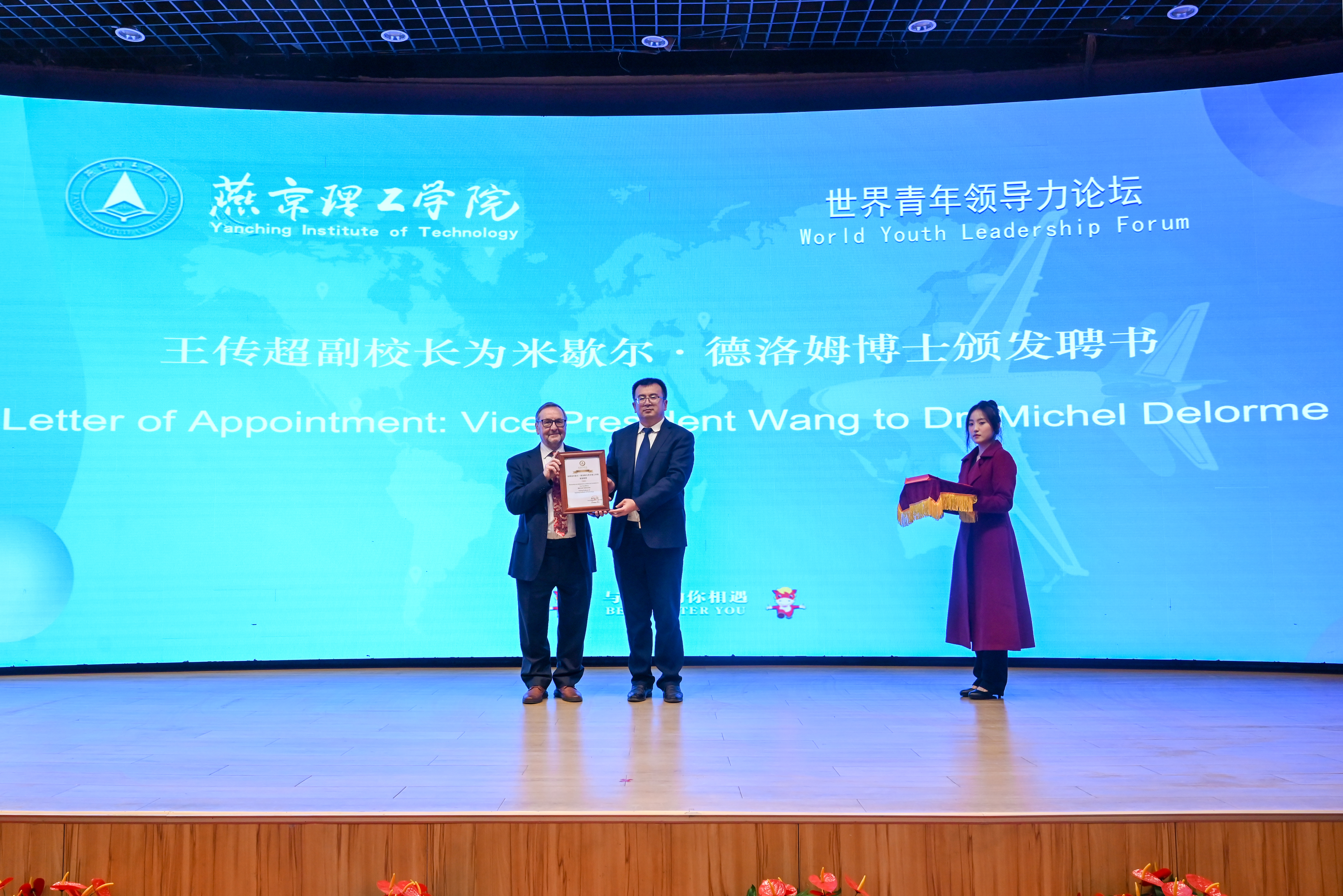 党委副书记、副校长王传超为米歇尔·德洛姆博士颁发聘书