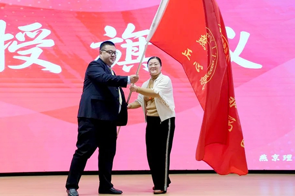 副校长吴汶燕将承载着希望的旗帜交予“正心感恩宣讲团”团长朱雷手中,旗帜挥舞,斩波截浪启新程,“正心感恩宣讲团”将不忘初心,继续弘扬感恩精神,自觉肩负起实现中华民族复兴大任的历史使命。