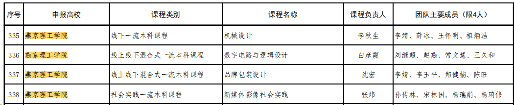 本网讯(教务处 李慧)近日,根据《河北省教育厅关于公布第二批省级一流本科课程立项建设名单的通知》(冀教高函〔2023〕84号),我校《机械设计》《数字电路与逻辑设计》《品牌包装设计》和《新媒体影像社会实践》4门课程获批河北省第二批省级一流本科建设课程。