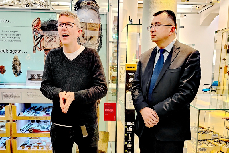 报告会结束后,考察交流团参观了剑桥大学人类学考古博物馆,从考古学、人类学到重点藏品,副馆长详细介绍着博物馆,并阐述了关于博物馆后续的建设与思考。在参观中,考察交流团了解了亚洲、非洲等人类学相关展品的数字化管理,并深深感触着传承与发扬中华优秀传统文化在高校发展进程中的重要性。